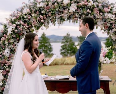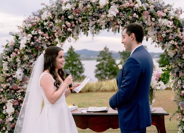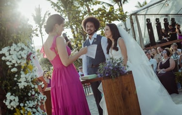 Na cerimônia, o roteiro clássico inclui entrada do noivo e padrinhos, entrada da noiva, fala do celebrante, troca de alianças, votos e encerramento com a saída dos noivos. Provide a general summary of the services you provide, highlighting key features and benefits for potential clients.